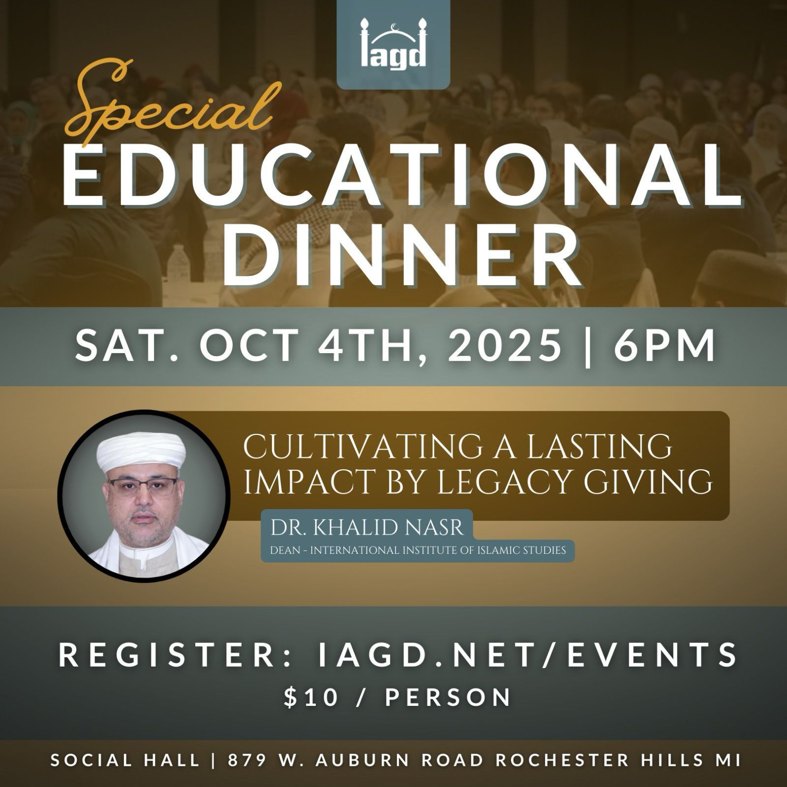 Featured October 4 @ 6:00 PM - 9:00 PM Special Education Dinner: Cultivating a Lasting Impact by Legacy Giving | Dr. Khalid Nasr $10.00