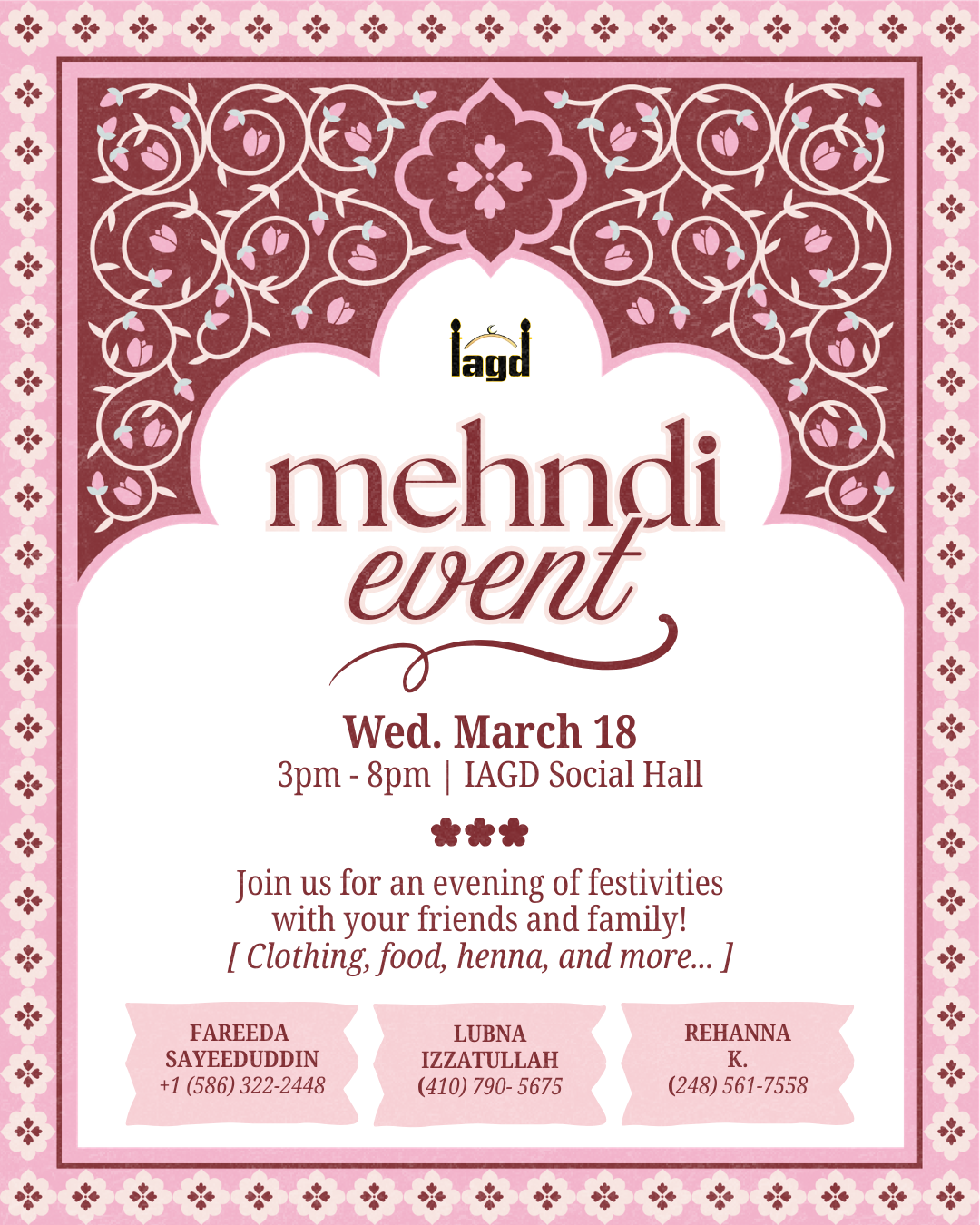 Join us for a beautiful evening of celebration at the IAGD Mehndi Event! Enjoy a festive gathering with friends and family featuring henna, clothing, food,…